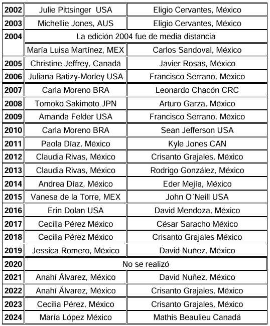 Los ganadores del Triatlón de Ixtapa-Zihuatanejo, desde que lo organiza Asdeporte son: